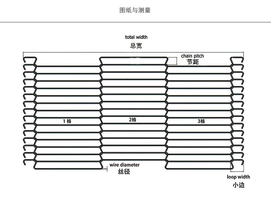乙字型网带又称乙型网带、食品网带、巧克力网带,使用不锈钢高弹韧丝制作。网带多用单小边结构,双小边结构用于特殊用途。可用于直线输送机,也可用于转弯运输机。网宽300mm-5000mm,通常情况下用齿轮定位传动。也可采用链条驱动。